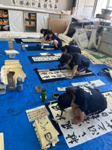 生徒は教員からの助言をよく聞き、仕上げに向け集中して筆を運んでいました。